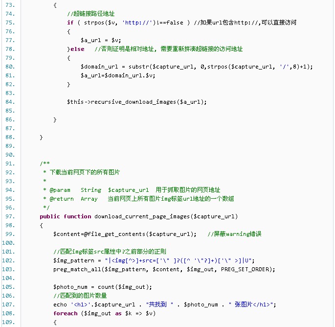 php如何实现抓取网页图片,相较于手动的粘贴复制,使用小程序要方便快捷多了,喜欢编程的人总会喜欢制作一些简单有用的小软件,最近就参考了网上一个php抓取图片代码,封装了一个php远程抓取图片的类,测试了一下,效果还不错分享给大家,代码如下: