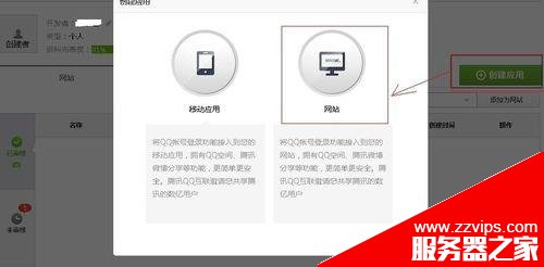 2、登录之后,进入“管理中心”,找到“创建应用”,因为我们是对自己的网站进行互联,所以选择网站类型,如下图所示。当然,如果你要与移动应用互联,就选择移动应用;