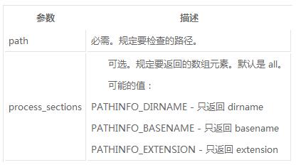 说明:pathinfo() 返回一个包含有 path 信息的关联数组。数组元素包括以下值: