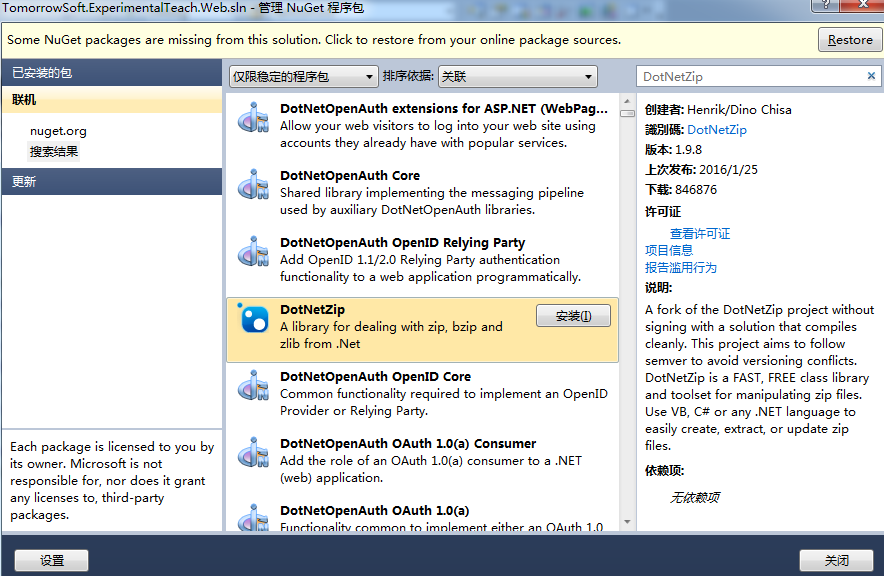 下载DotNetZip