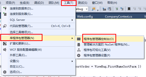 从上图中的地址栏中可以看到这个页面调用的是Company Controller下的Index Action.因此我们就先打开Controllers文件夹下的CompanyController.cs文件,写入如下代码: