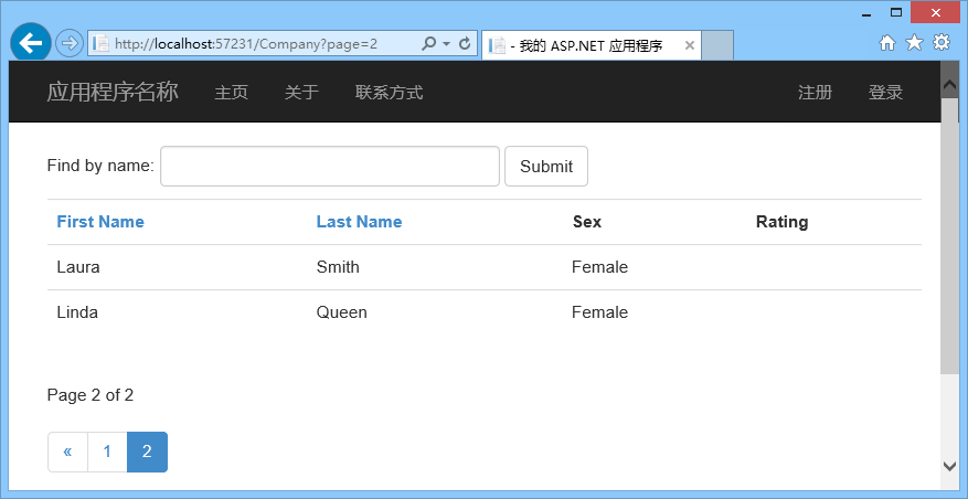 通过浏览器查看此页面。之后点击LastName链接,则按照上面代码会生成如下页面: