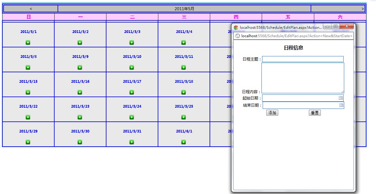 对实现页面刷新完善的很好,用日期控件时可以有比较好的享受,这次的OA日期记事功能也得益于此控件,具体效果图如下: