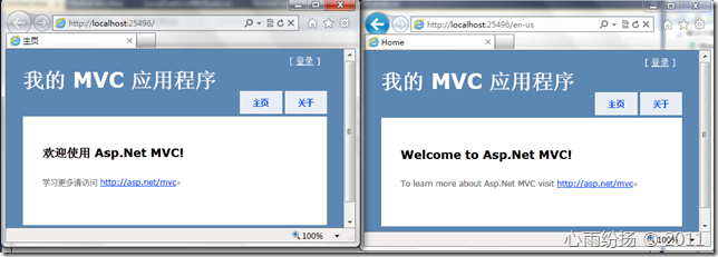 我们已经把内容转移到了资源文件,但是我们的程序还不支持本地化,因为没有任何地方我们可以设置指定语言的地方。为了简单起见,我们将使用url来标明选择使用的语言(就类似微软网站),意思就是如果我的URL是http://localhost/en-US/Home/Index,则网站会体现为英文;而http://localhost/zh-CN/Home/Index则是简体中文。用户可以在任何停留的页面更改语言,而且 当他想共享网址的时候也会保留语言设置。