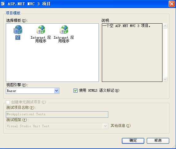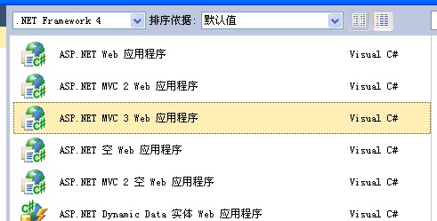 第一步:打开VS,新建选择MVC3 web应用程序,输入项目名称以及目录