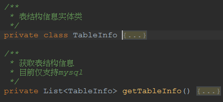 表注释、表结构信息实体类、执行sql获取表结构信息的方法