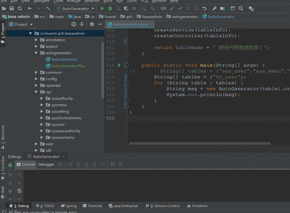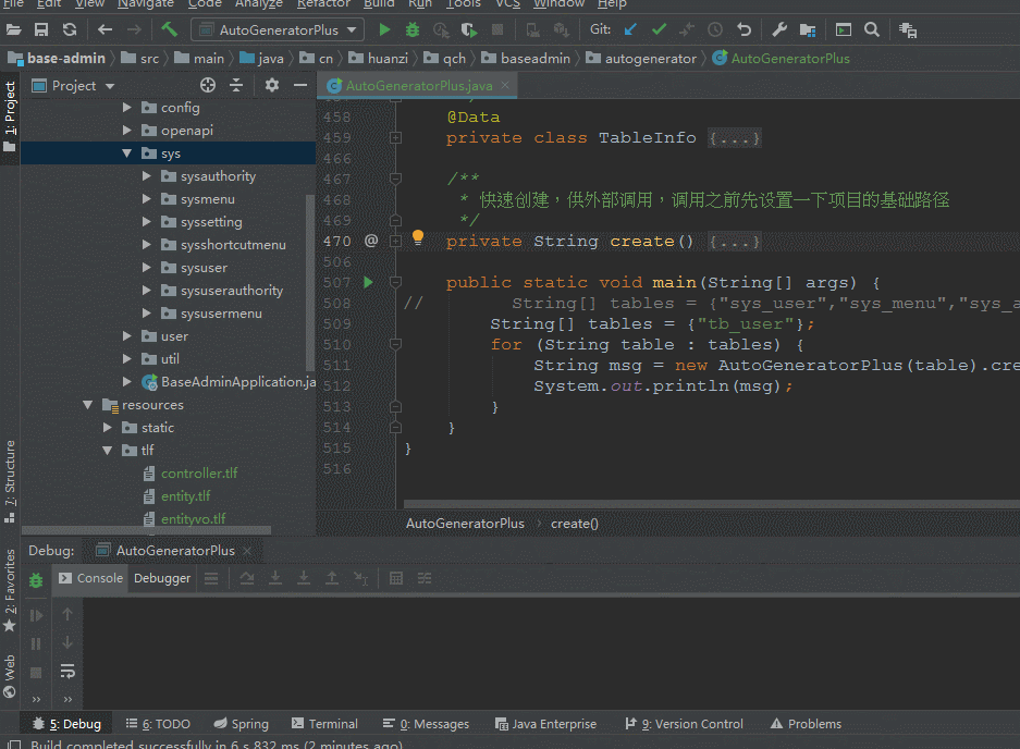 自己写的代码生成器,扩展性更强,满足每个业务模块的代码要求不成问题