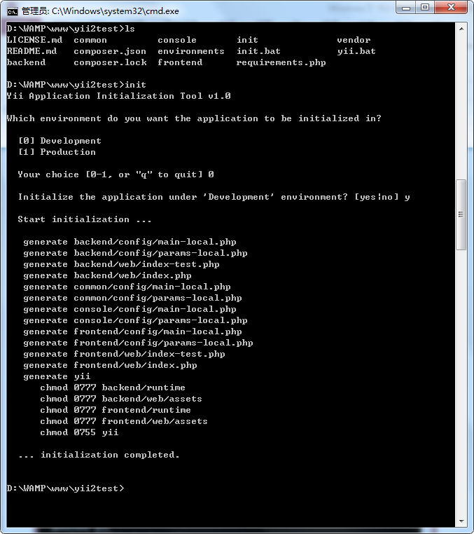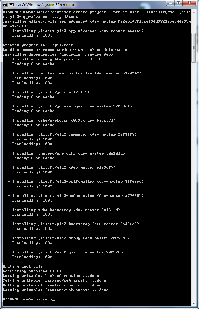 composer create-project –prefer-dist –stability=dev yiisoft/yii2-app-advanced ../yii2test