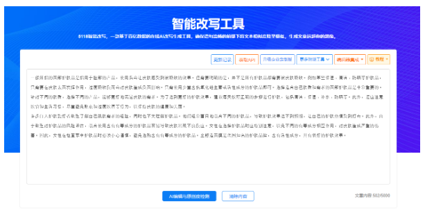 为满足用户使用需求,5118智能改写在已有“整句改写升级版”的基础上,再次上线“一键改写升级版”。