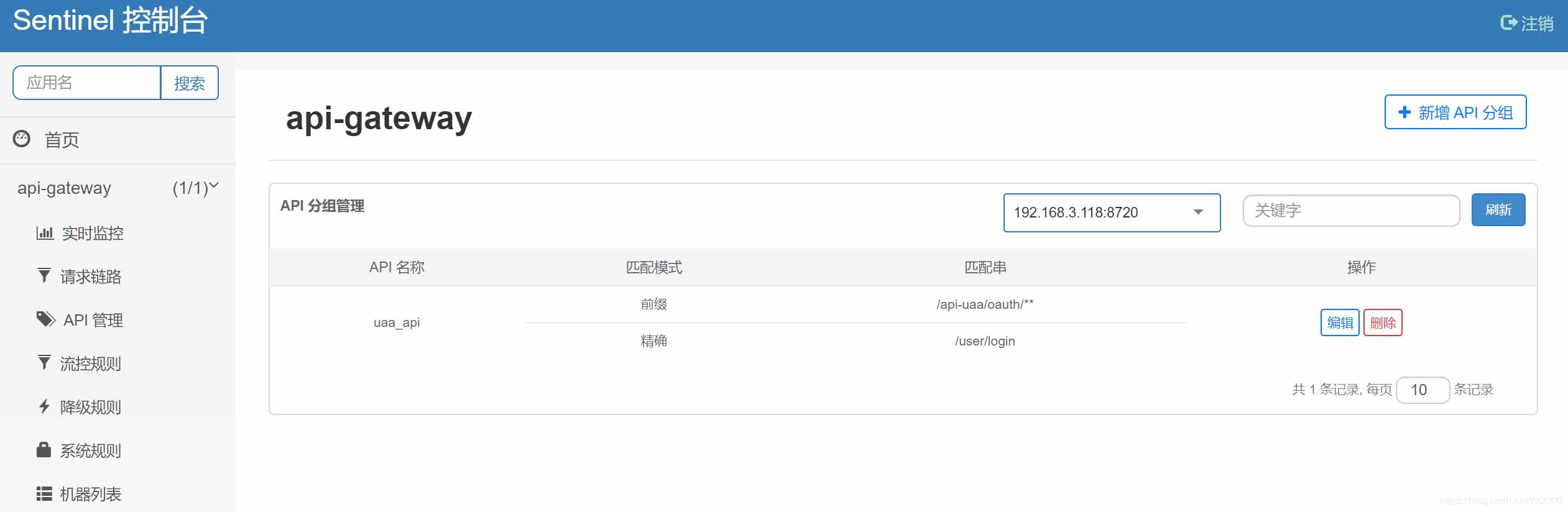 Sentinel 1.6.3 引入了网关流控控制台的支持,用户可以直接在 Sentinel 控制台上查看 API Gateway 实时的 route 和自定义 API 分组监控,管理网关规则和 API 分组配置。