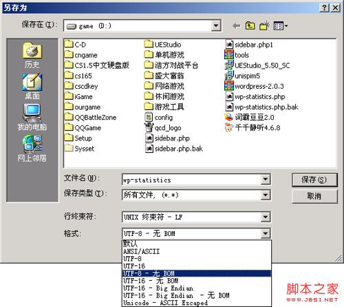 PHP在设计时就没有考虑BOM的问题,也就是说他不会忽略UTF-8编码的文件开头BOM的那三个字符。由于必须在转换->UTF-8转ASCII,或者在另存为里选择ASCII编码。如果是DOS格式的行尾符,可以用记事本打开,点另存为,选ASCII编码。如果包含中文字符的话,可以用UE的另存为功能,选择“UTF-8 无 BOM”即可。请参考下面的图片: