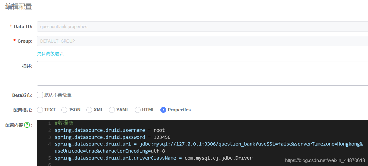 这个Data id 与上面第二个步骤中的名称配置对应(注意看注释)