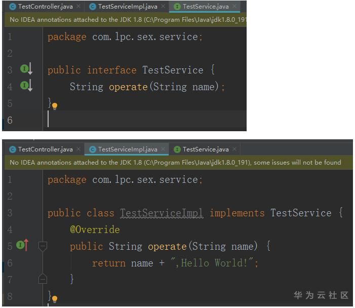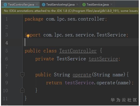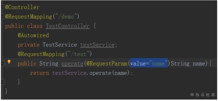 (1)其中,TestController实现功能,返回name+“Hello World!”,引用TestService