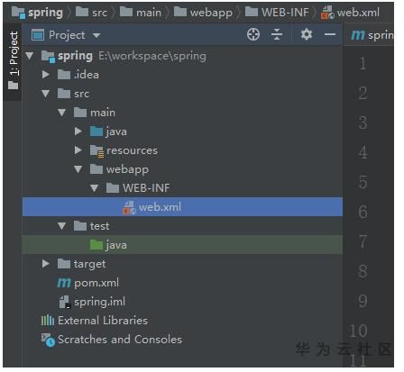 (2)加载配置文件实现,需要先配置一个web.xml,路径和内容如下: