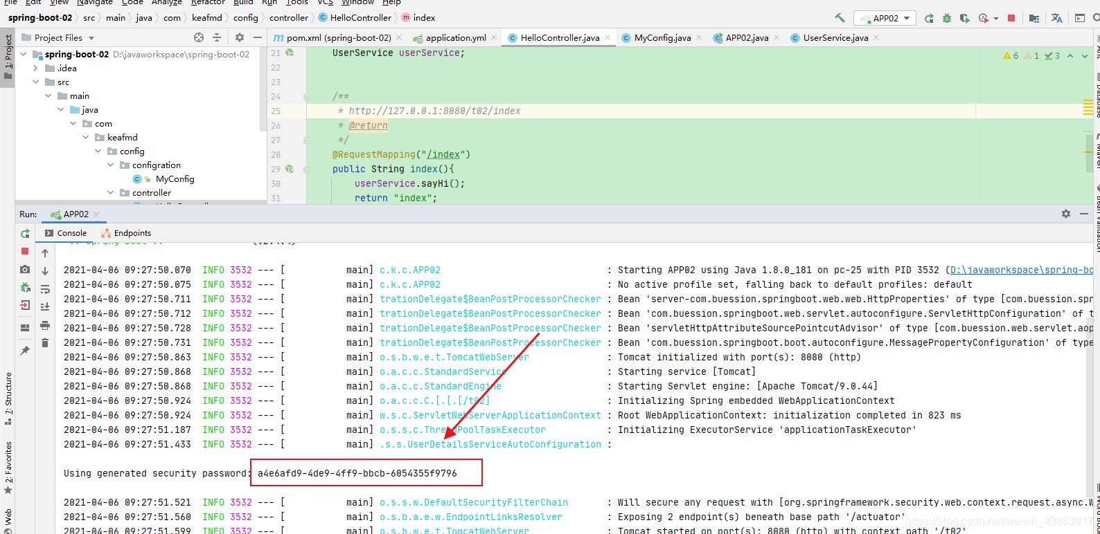 仔细看了下idea控制台的信息,发现出现了一个security password,原来是进入到了一个安全拦截界面,我们输入idea控制台打印的密码即可,username是user。