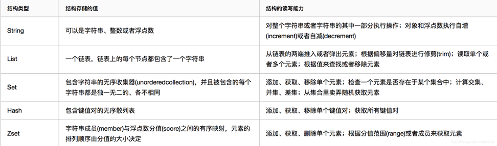 redis可以存储键与5种不同数据结构类型之间的映射,这5种数据结构类型分别为string(字符串)、list(列表)、set(集合)、hash(散列)和 zset(有序集合)。