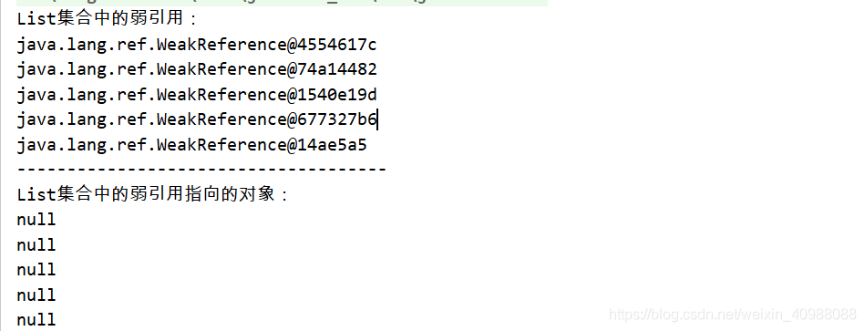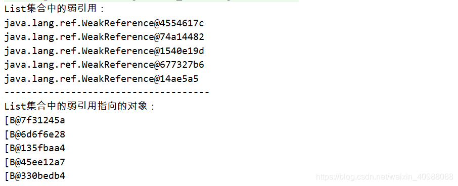 运行。发现此时弱引用指向的对象都被回收掉了。和软引用一样,弱引用也可以结合引用队列使用,这里不再赘述。