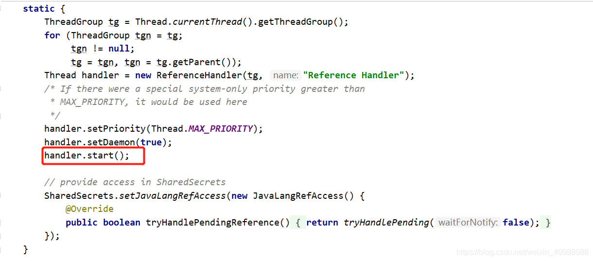 cleaner类的父类是phantomreference,爷爷类是reference。reference类在初始化的时候会启动一个referencehandler线程