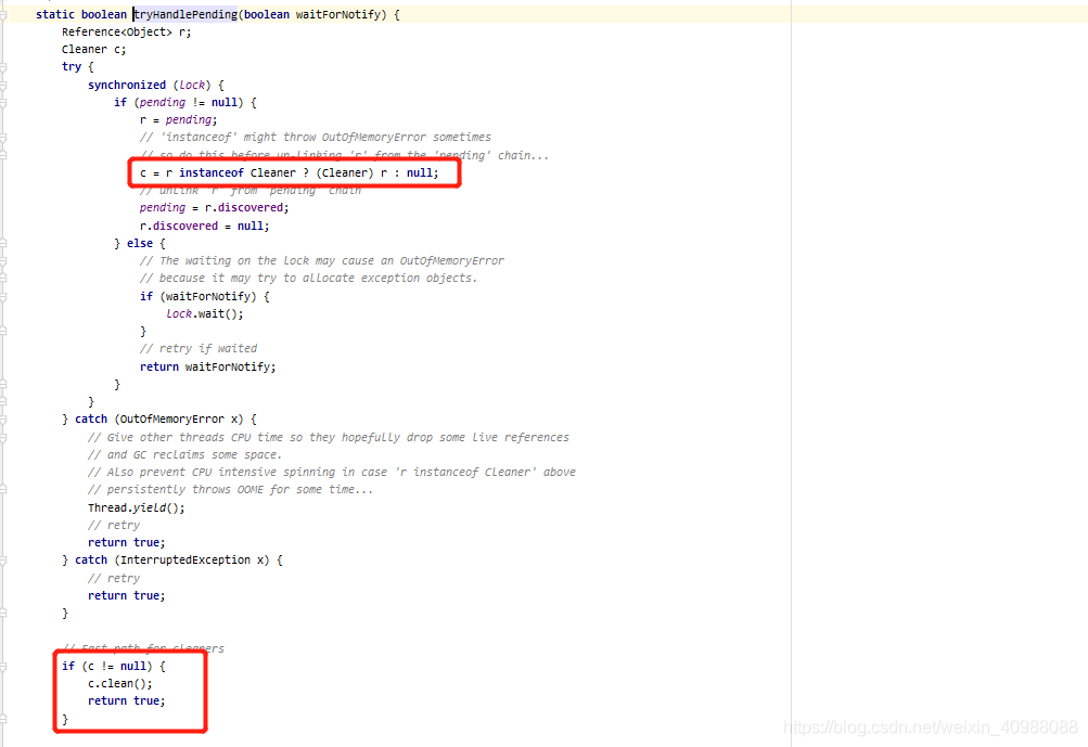 这时referencehandler线程会调用cleaner对象的clean方法完成对堆外内存的回收