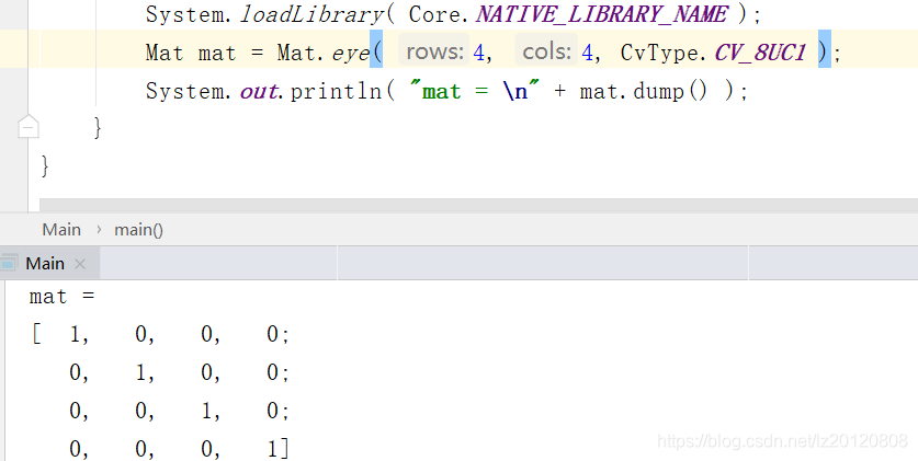 - Matmat=Mat.eye(4,4,CvType.CV_8UC1);