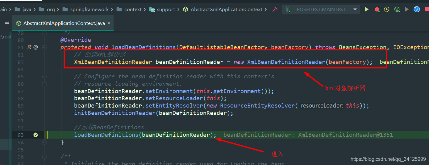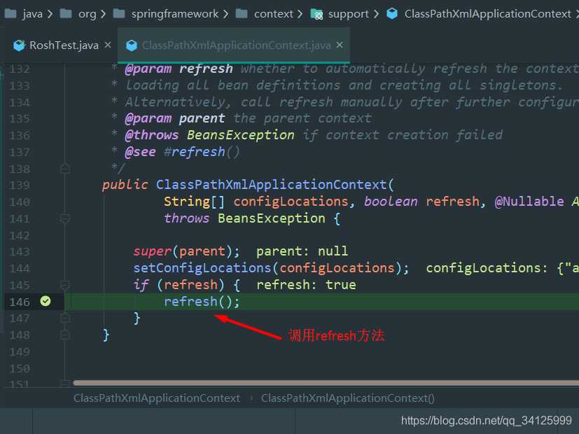 描述:调用AbstractApplicationContext refresh()方法进行xml解析