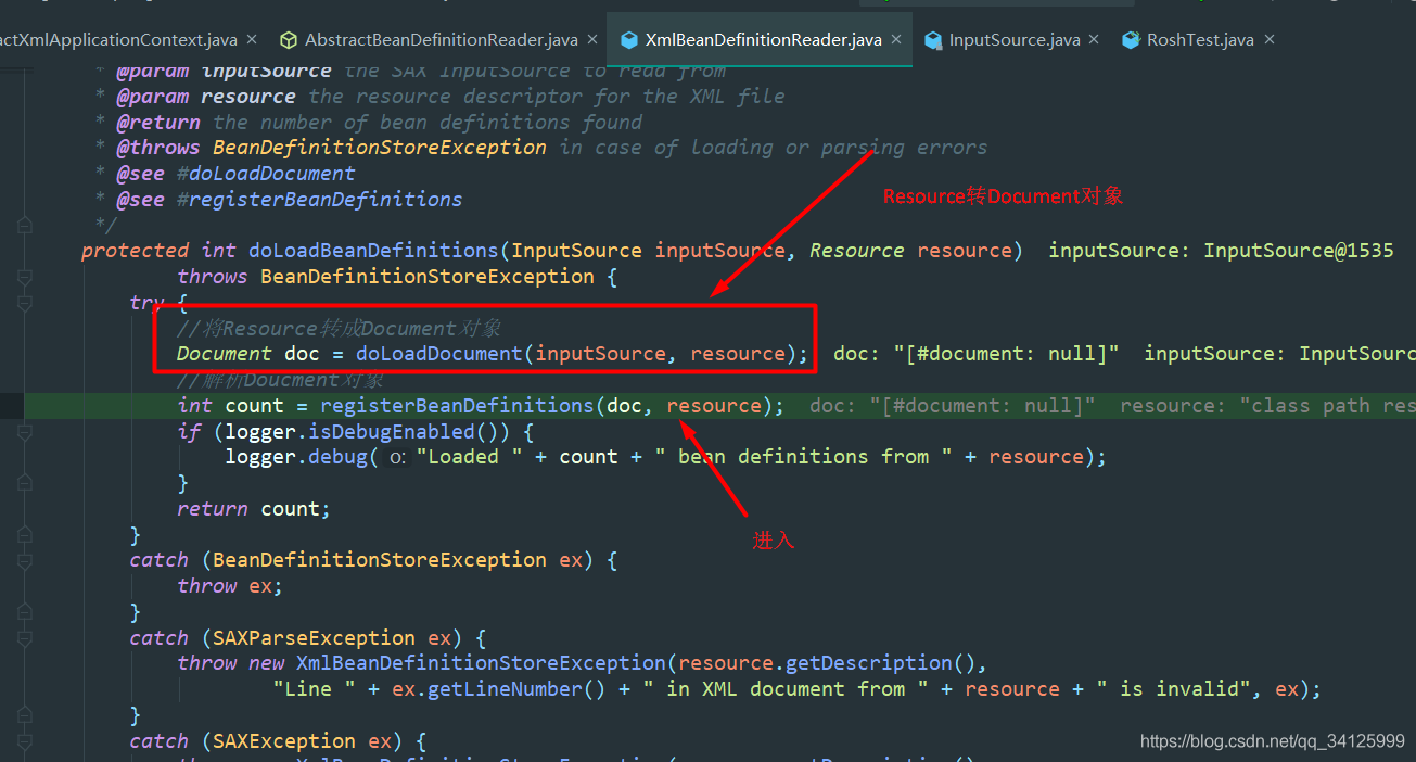 - (3) doLoadBeanDefinitions(InputSource inputSource, Resource resource)方法。