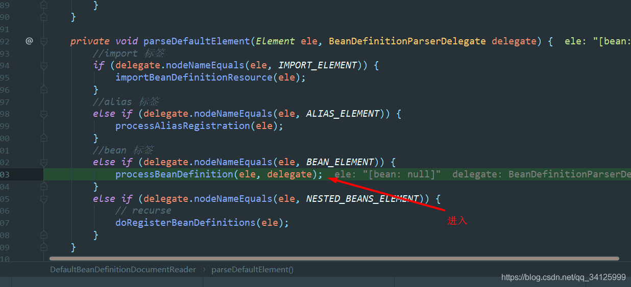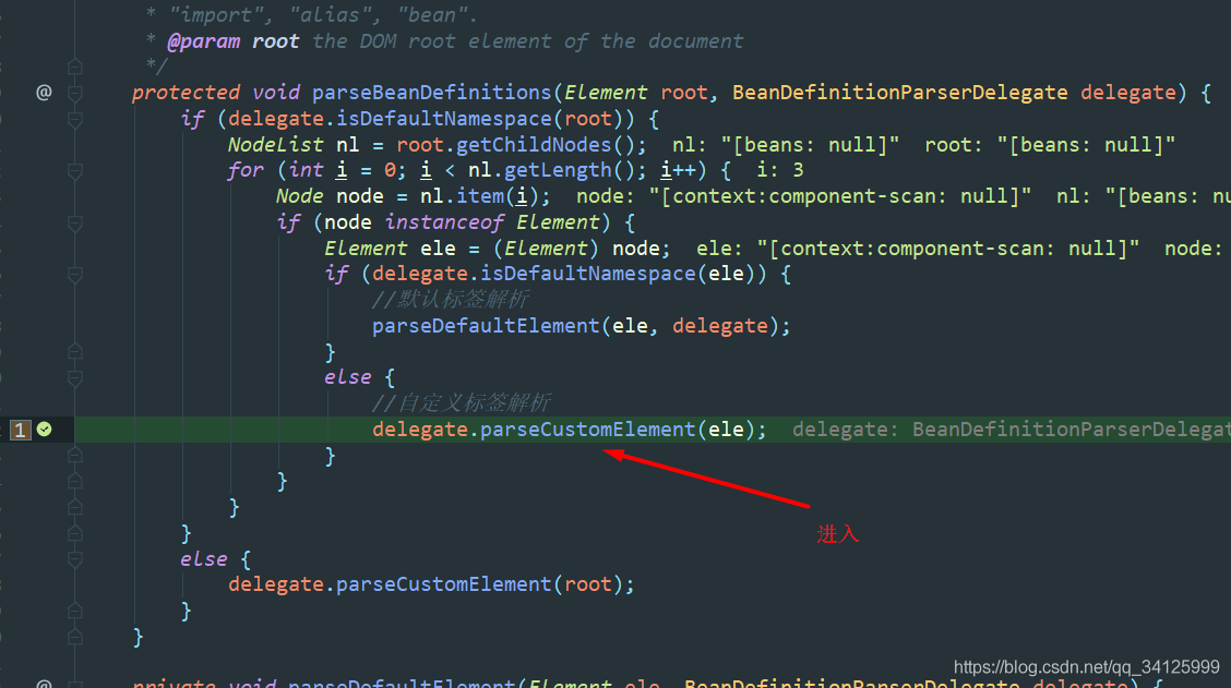 - (3) parseBeanDefinitions(Element root, BeanDefinitionParserDelegate delegate) 方法解析默认标签、自定义标签。
