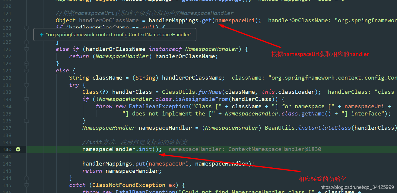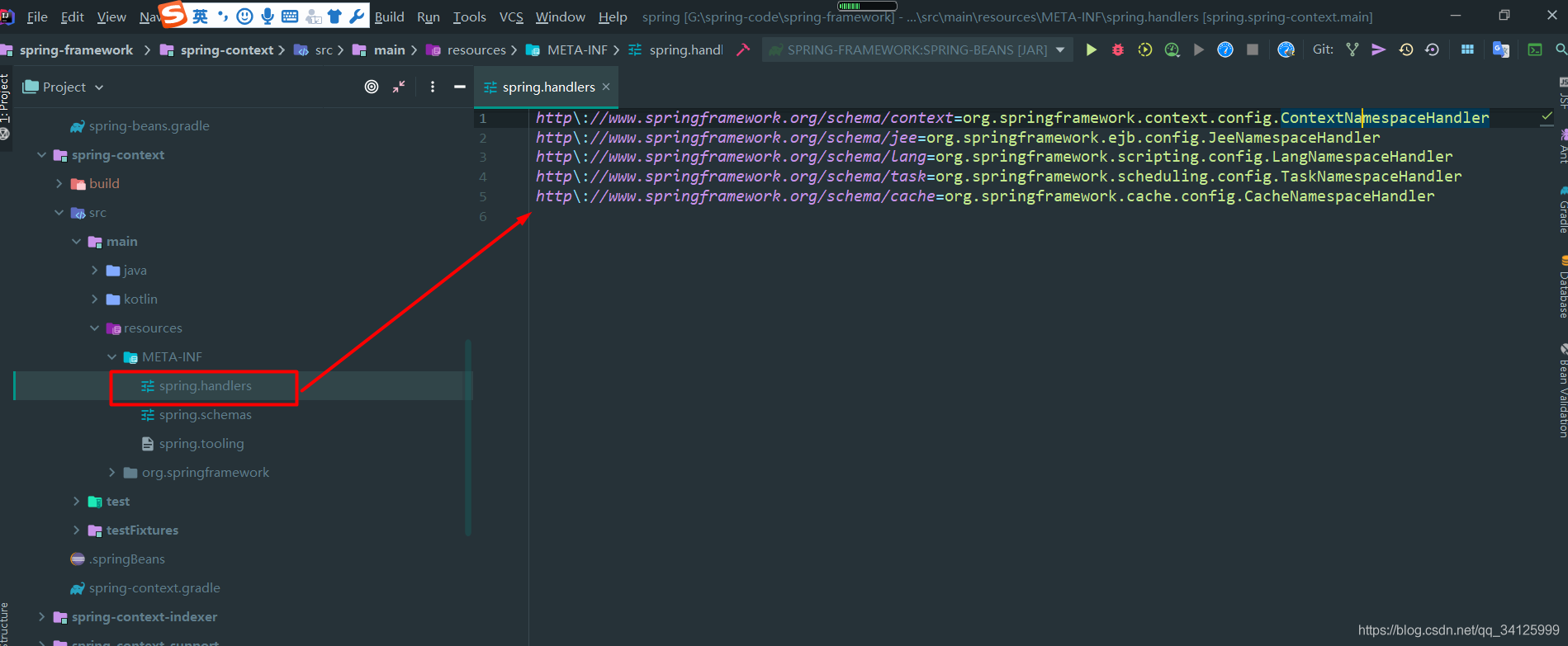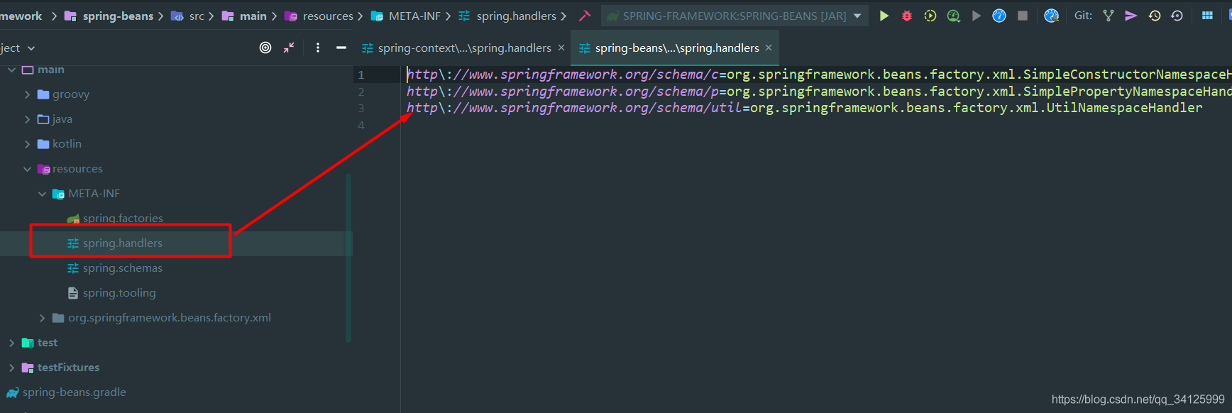 2. 根据命令空间获取 NamespaceHandler 对象通过 SPI 机制获取 spring 中所有 jar 包里面的 "META-INF/spring.handlers"