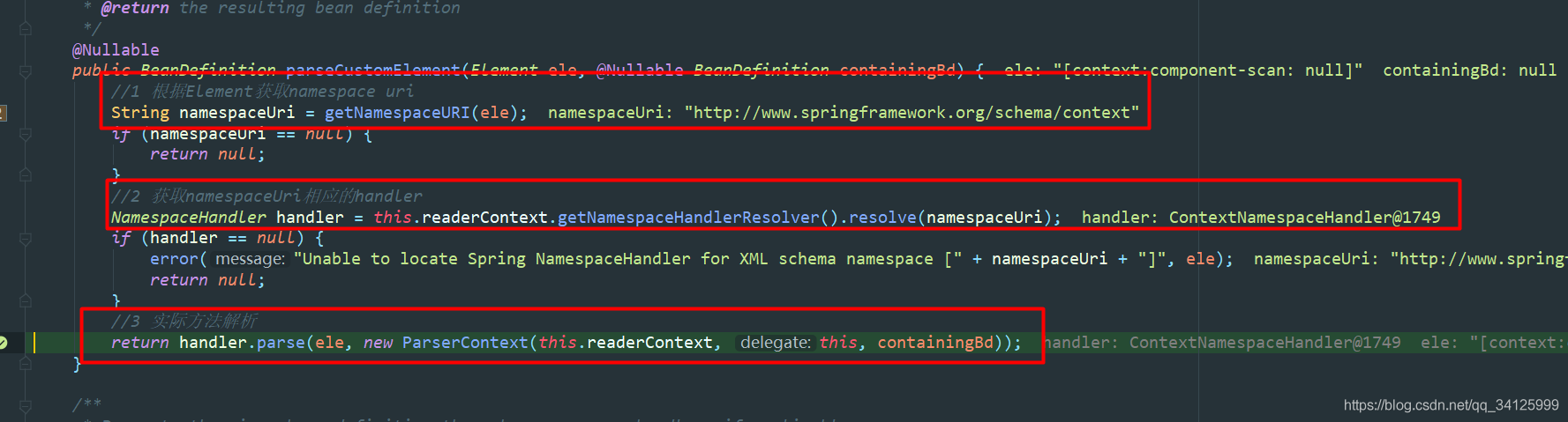 1. 获取自定义标签的 namespace 命令空间,例如:http://www.springframework.org/schema/context