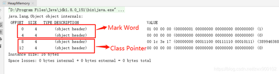 package com.zwx.jvm; import org.openjdk.jol.info.ClassLayout; public class HeapMemory { public static void main(String[] args) { Object obj = new Object(); System.out.println(ClassLayout.parseInstance(obj).toPrintable()); } }