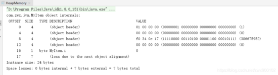 package com.zwx.jvm; import org.openjdk.jol.info.ClassLayout; public class HeapMemory { public static void main(String[] args) { MyItem myItem = new MyItem(); System.out.println(ClassLayout.parseInstance(myItem).toPrintable()); } }
