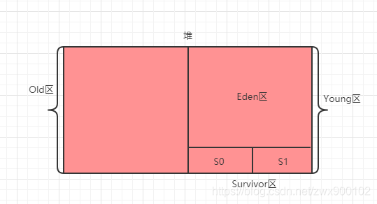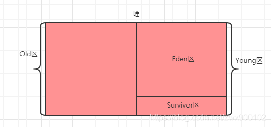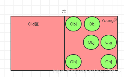 现在拆分成了Young区,那我们看下面一个场景,下面的Young是经过垃圾回收之后的一个概图: