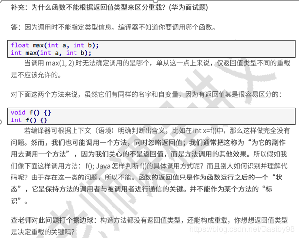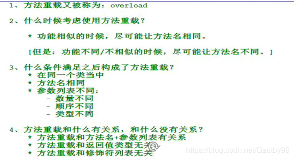 方法名相同,参数列表不同(个数不同、类型不同、位置/顺序不同)的情况 就是方法重载。和返回值类型、访问修饰符无关!