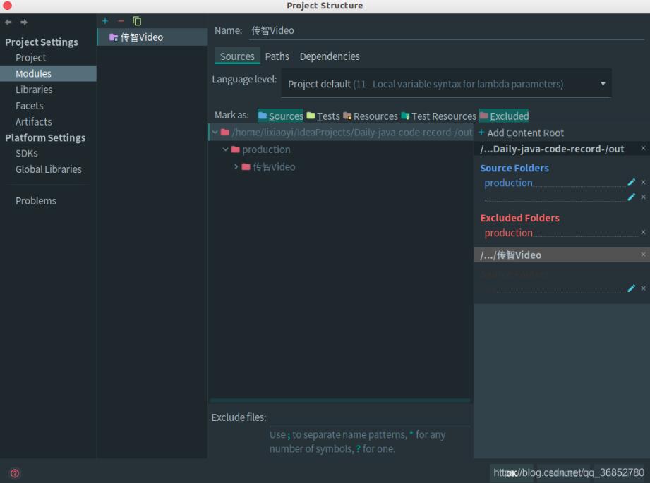 4、选择当前项目的上一级目录daily-java-code-record-文件夹(当前项目与out文件夹属于同一级目录,所以选择上一级就会显示out以及项目文件夹)