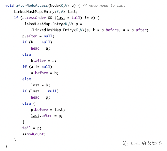 所以,问题就发生在get操作上,LinkedHashMap的get操作被重写,目的是为了实现LRU功能,在get之后,将当前节点移动到链表最后。
