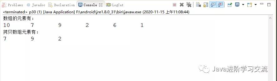- System.out.println(" 拷贝数组元素有:");