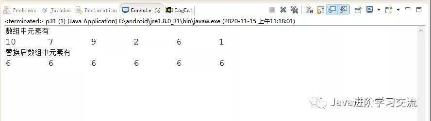 - System.out.println(" 替换后数组中元素有");