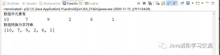 四、使用Arrays的toString(int[] arr)方法返回数组中字符串