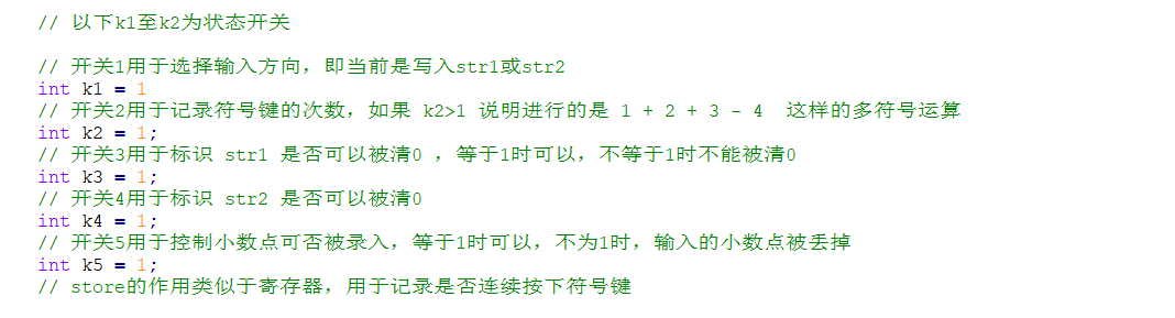 定义存储当前被按下的操作数和操作符,result存储运算的结果