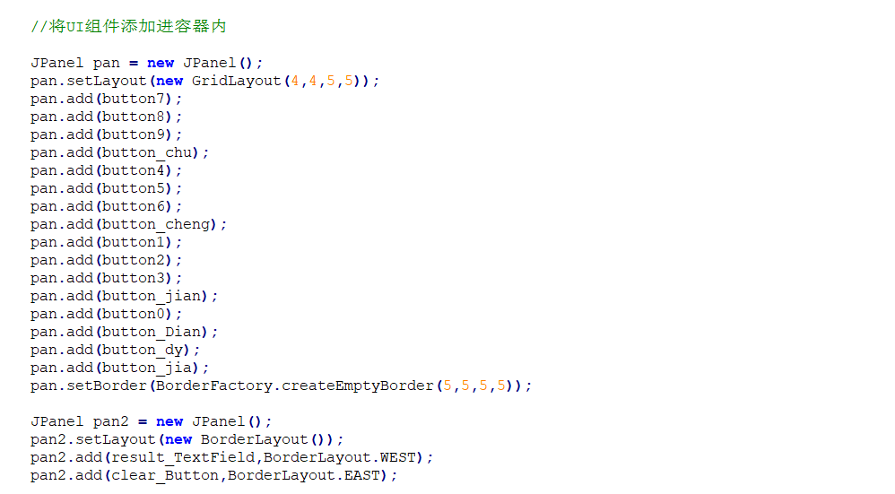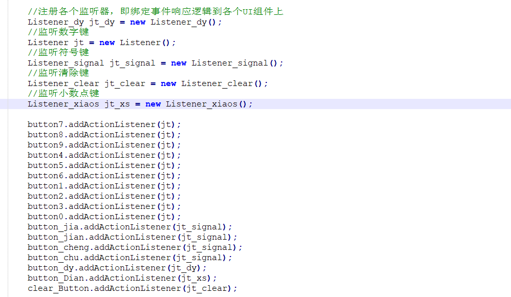3.在构造器中完成等效键的设置、ui组件添加进容器、事件处理程序的设计、计算逻辑的实现以及窗口关闭事件的代码编写的工作