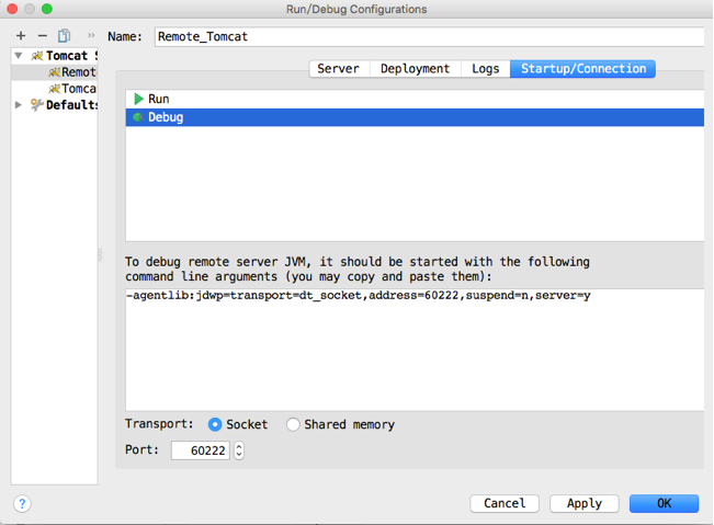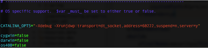 catalina_opts="-xdebug -xrunjdwp:transport=dt_socket,address=60222,suspend=n,server=y"