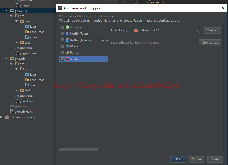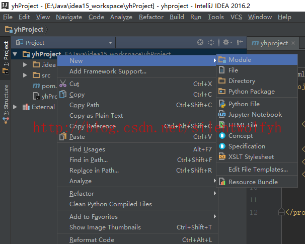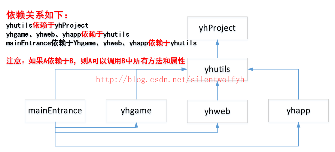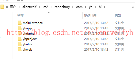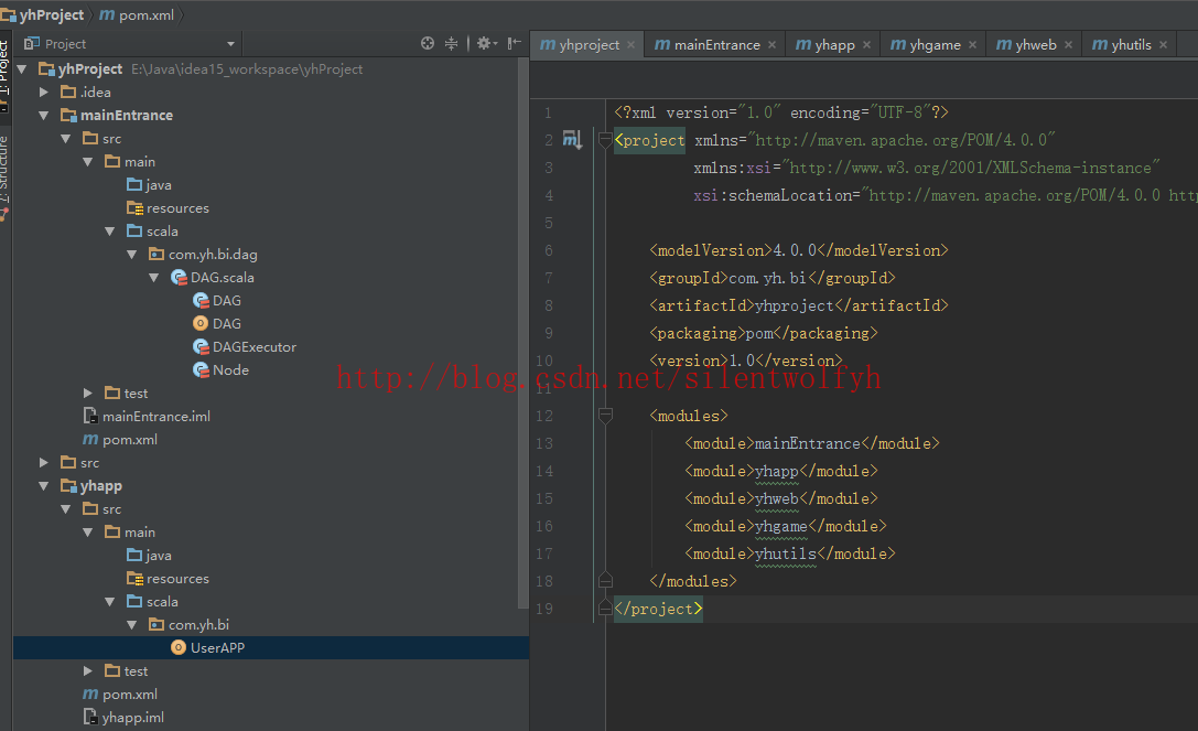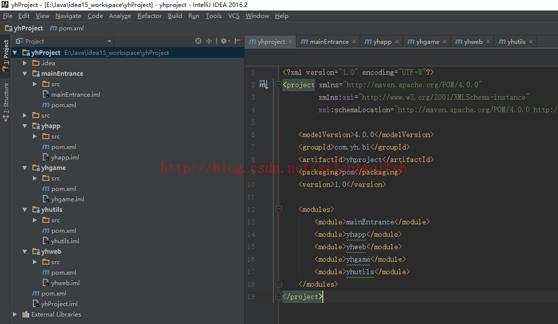 2、本文项目为yhproject,其余都为module,分别是:mainentrance、yhutils、yhapp、yhweb、yhgame