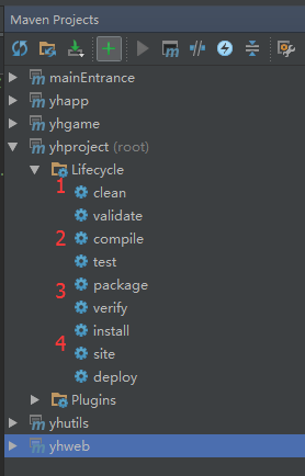 5、在yhproject中,可以统一对所有的module进行清理、编译、打包