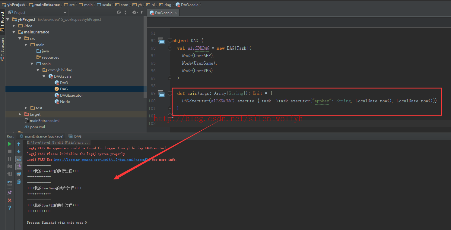 注意:我在mainentrance执行dag中的main文件,可以调用且执行了yhutils、yhapp、yhweb、yhgame中的代码