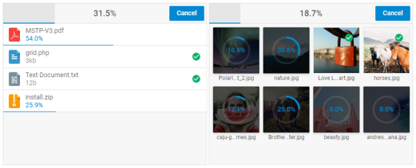 作为一个纯JavaScript库,FineUploader支持几乎所有主流的浏览器,并且可以配合任何一种服务器端技术来使用。当然,它也可以作为jQuery插件被使用。该工具带有进度条、支持拖放、多个文件选择、数据分块、图像文件预览、以及图片缩放等效果。您可以根据用户的类型,限制他们上传的文件数量。由于其样式和自定义的过程都能够独立于JavaScript,因此您只需编辑HTML和CSS,即可修改其布局。