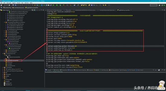 在application.properties中配置证书及端口,密码填写第3步中的密码