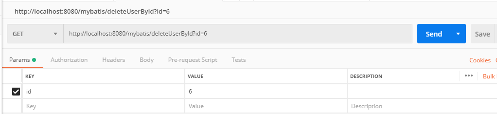 ③ http://localhost:8080/mybatis/deleteuserbyid?id=6 删除id为6的用户