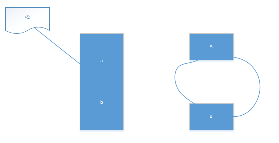 那么使用标记清除算法是可以回收a和b的,原因是标记清除算法是从栈中根对象开始的,改算法走完后,a对象和b对象是没有被标记的,会被直接回收。