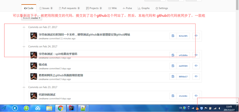 所以,还得有个操作,才能提交到github网站上。也就是本地代码和github网站上的代码同步一致。