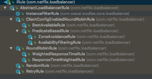 也就是说最终会调用 irule 选择到一个节点,这里支持很多策略,比如随机、轮训、响应时间权重等: